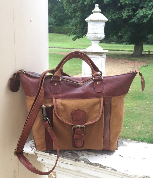 Melton – Canvas and Vintage Leather Satchel / Shoulder Bag