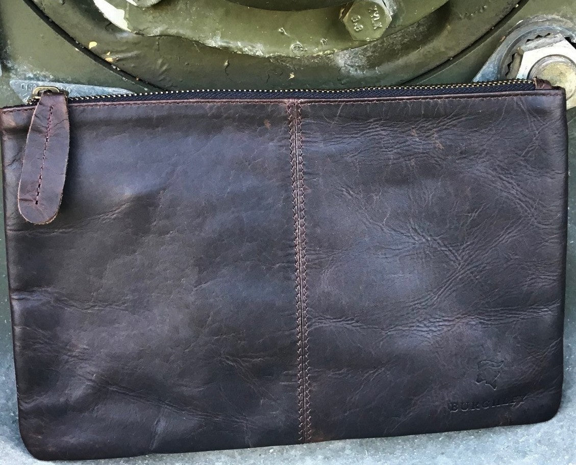 Our Classic Leather Pouch is handcrafted from eco-friendly vegetable tanned cow leather. Each bag has an individual, unique character, with a gorgeous vintage look. An elegant, classic design that can be a clutch, office companion or travel-document wallet.